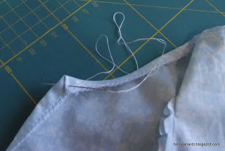 Fixar com alfinetes , costura com costura, ver segunda foto. E costurar com pequenos pontinhos.
