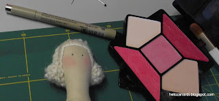 Podemos usar para os olhos caneta permanente ou tinta para tecido e para as bochechas, o "blush" de maquiagem.Vestimos a boneca com o robe ou casaco e colocamos a asa nas costas, prendendo ao corpo com pontos invisíveis. E a Tilda está pronta.