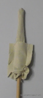 Detalhe de como virar os braços e as pernas, da extremidade fechada para a aberta usando o palito de madeira. O mesmo palito ajuda também a abrir a costura por dentro.